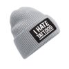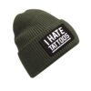 Cuffia con maglia singolo strato in costina. Corona progettata per il massimo comfort. Modello con ampio risvolto. Patch in cotone nero applicata sul risvolto. 52% poliestere riciclato 47% acrilico 1% elastan. Stampa patch: I HATE TATTOOS