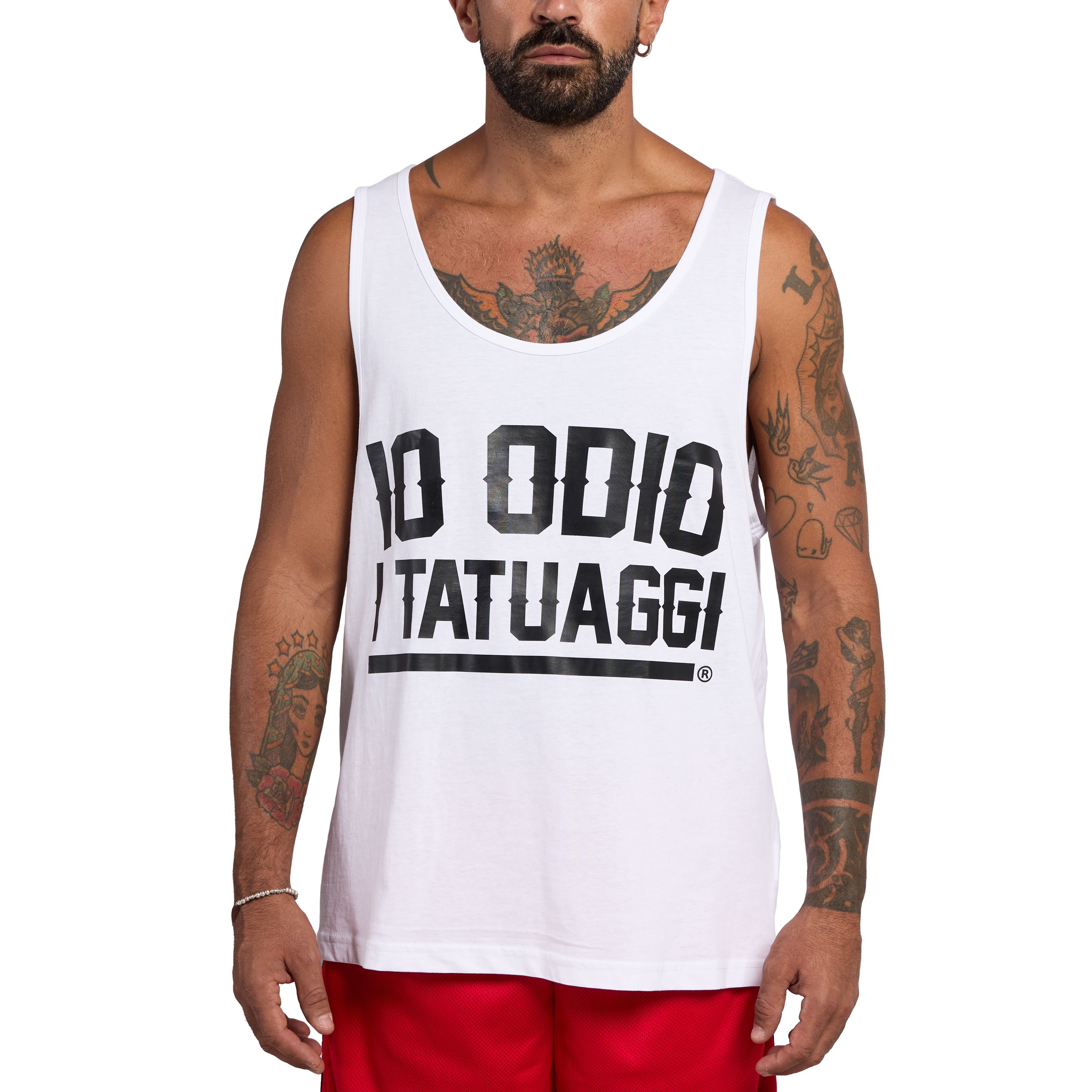 Canotta unisex, profondo girocollo, giromanica largo, orlo stretto su girocollo e giromanica, vestibilità over.