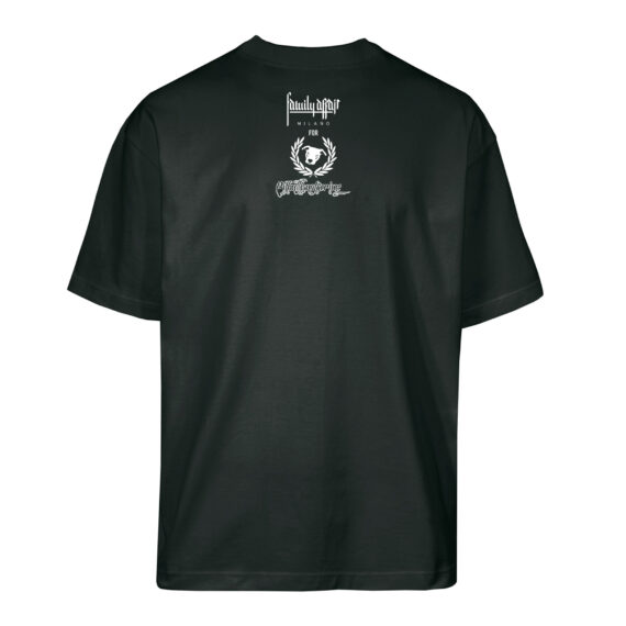 T-Shirt manica corta. Vestibilità Over. Giro manica sceso. 100% cotone ring spun. Grammatura180 gr/mq. Made in Italy. Stampa fronte: Opera PIT-BULL IS NOT A CRIME. Stampa retro: Logo FAMILY AFFAIR FOR PIT-BULL IS NOT A CRIME.